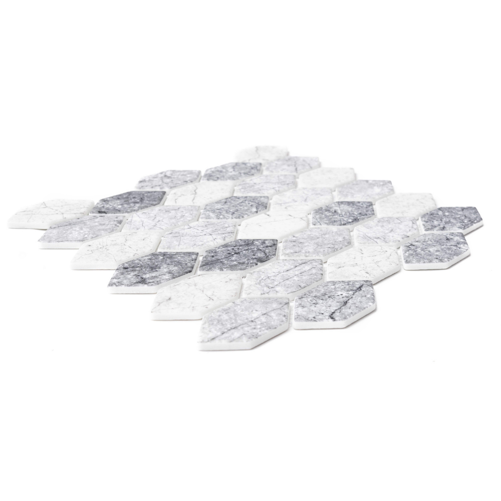 Meet our Elongated Hex collection, a stunning mosaic ensemble crafted from recycled glass and conveniently arranged on a mesh back for effortless installation. This sophisticated mosaic captures the organic essence of natural stone, showcasing a palette of diverse neutral tones that impart a sense of tranquility to any environment. The textured design and sleek finish make these recycled glass mosaics an ideal choice for enhancing kitchen backsplashes or adorning bathroom walls.
