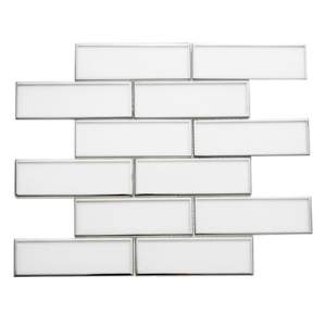 Chelsea 2"x6" White With Gold Glass Glossy Mosaic