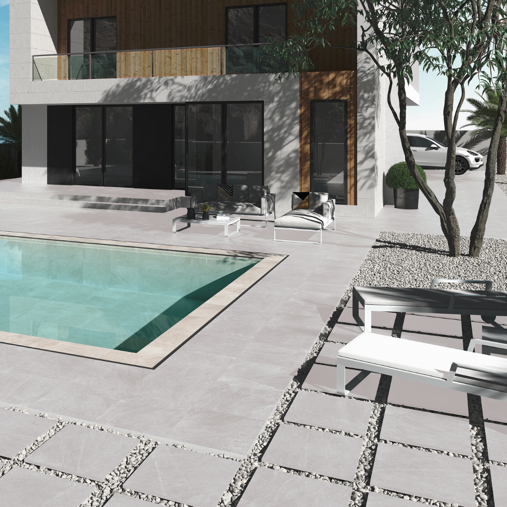 Meet Slaterock, a chic tile collection featuring authentic concrete aesthetics made of durable porcelain. Ideal for both indoor and outdoor spaces, Slaterock's easy-to-clean surface makes it perfect for spas, patios, and pool areas. Elevate any relaxation space with its natural look and versatile coloring.
