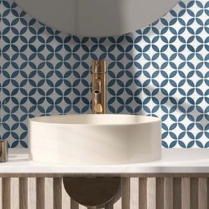 3. Timeless Hex Calacatta Blue Glass Matte Mosaic $34.43 pcs.