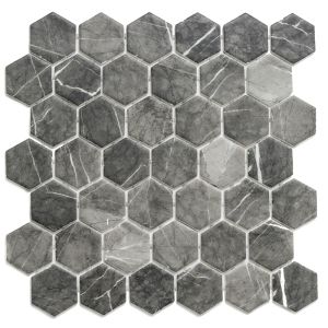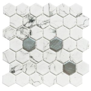6. Timeless Hex XL 2"x2" Venato Recycled Glass Matte Mosaic $34.42 pcs.