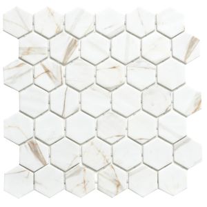 3. Timeless Hex XL 2"x2" Calacatta Gold Recycled Glass Matte Mosaic $34.42 pcs.